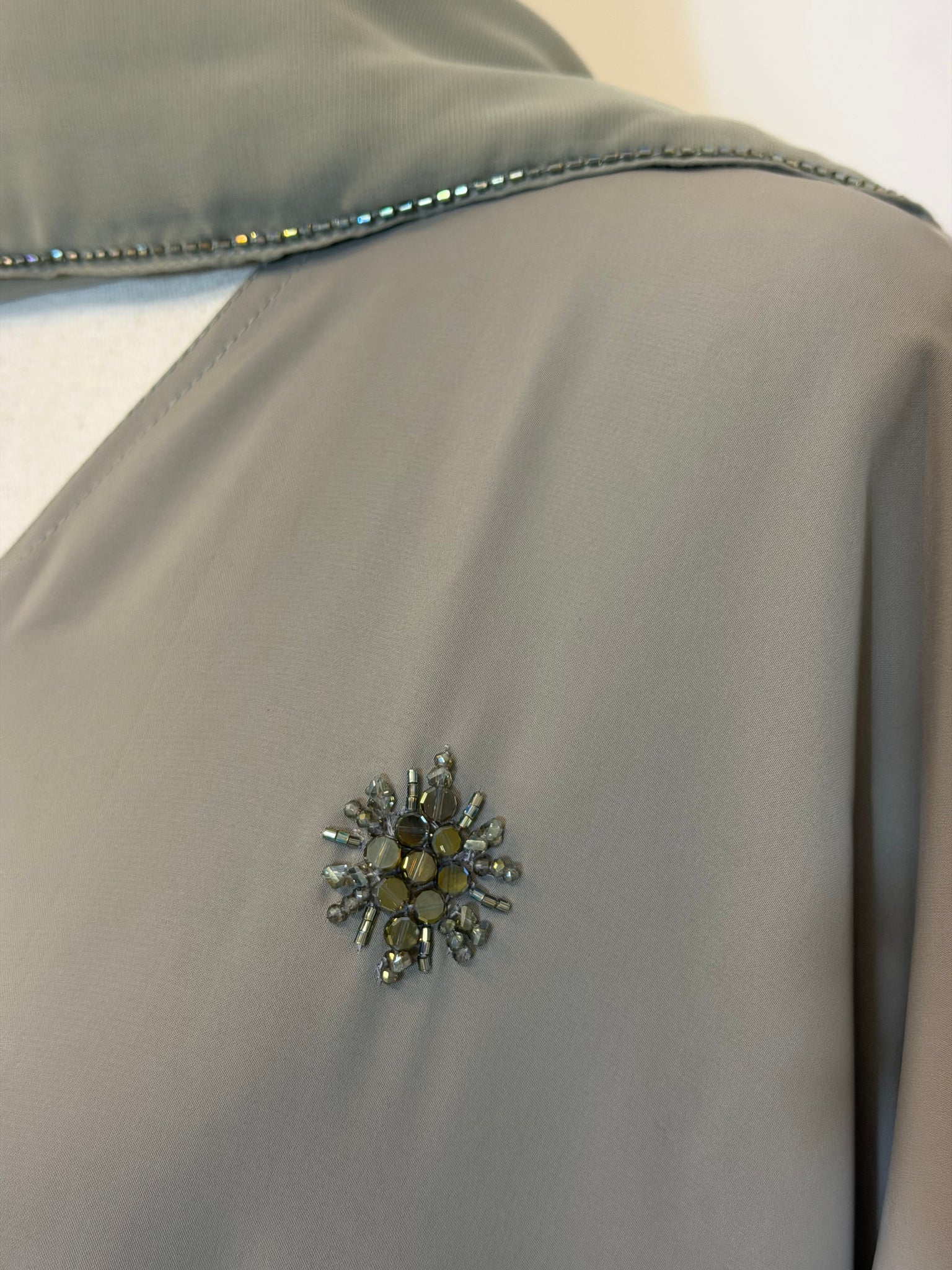 New Regal Abaya is a premium hand embroidered Abaya with motifs style of embroidery and a  delicate beaded border on the scarf.