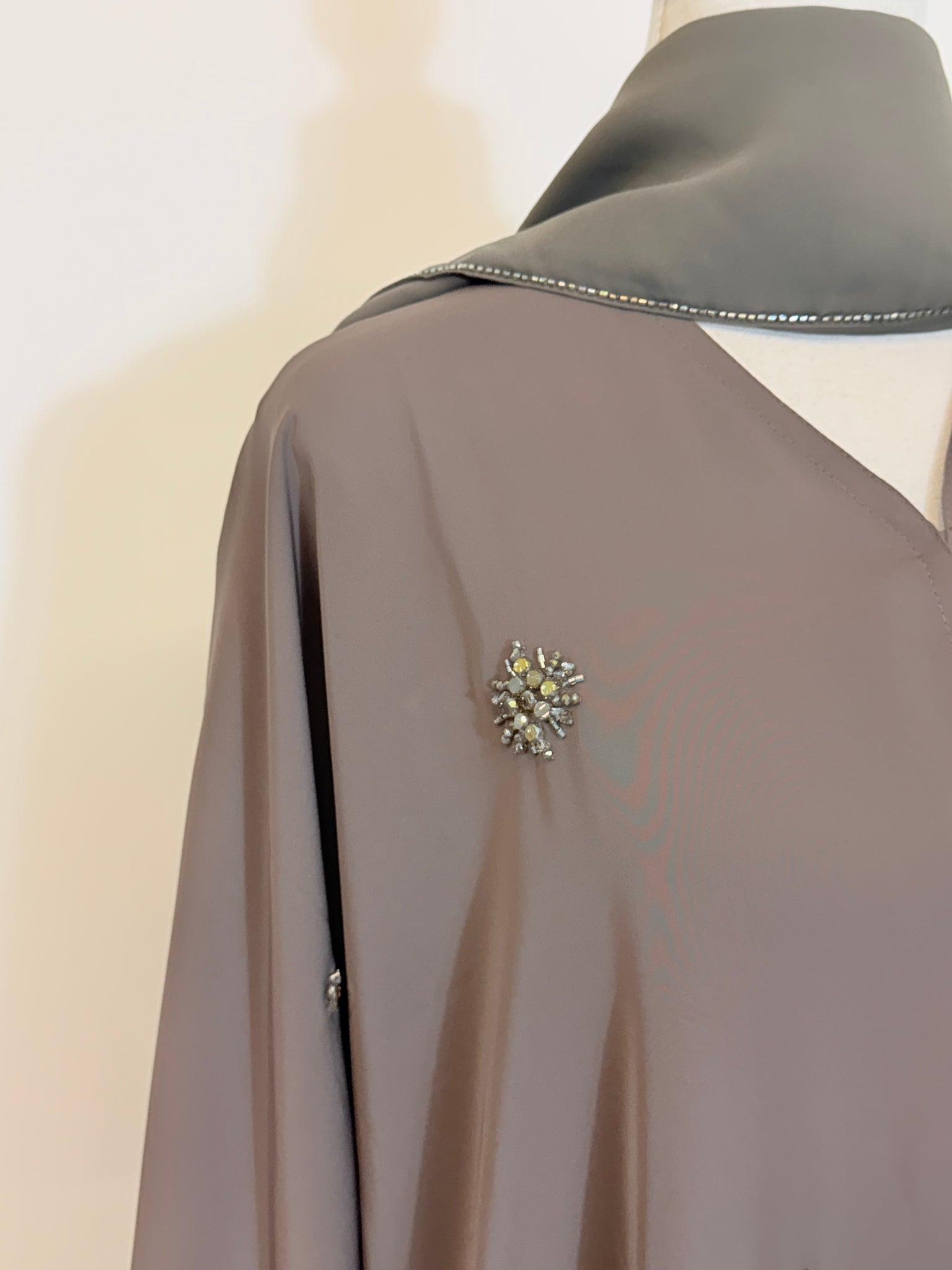 New Regal Abaya is a premium hand embroidered Abaya with motifs style of embroidery and a delicate beaded border on the scarf.